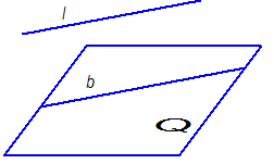 Прямая параллельна плоскости, если она параллельна какой-либо прямой, лежащей в этой плоскости. Так, прямая l параллельна прямой b, расположенной в плоскости Q в соответствии с рисунком 1.3.20, следовательно,