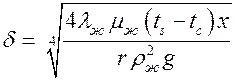 Проинтегрируем левую часть этого выражения от 0 до δ, а правую – от 0 до x. Получим формулу для расчета толщины пленки конденсата