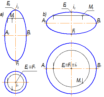 в) эллипсоид вращения, который образуется вращением эллипса вокруг собственной оси. Принимая за ось вращения малую либо большую ось эллипса, получаем соответственно сжатый или вытянутый эллипсоиды вращения в соответствии с рисунком 1.3.43;