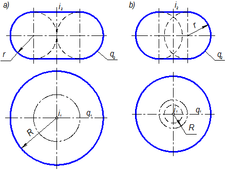 2) r=R – окружность касается оси – закрытый тор в соответствии с рисунком 1.3.47, а;