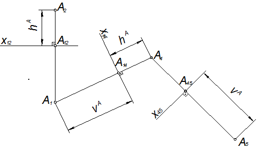 Таким образом, мы имеем проекции точки А в старой системе (П1, П4) и её проекции в новой системе (П1, П4).