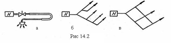 Сложные трубопроводы делят на тупиковые (рис. 12.2, б) и кольцевые (12.2, в).