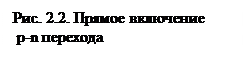 Если источник напряжения подключить знаком «+» к р - области, а знаком «–» к области n-типа, то получим включение, которое называют прямым (рис.2.2).