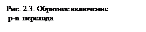При обратном включении p-n перехода электрическое поле источника напряжения напряженностью Еи направлено в ту же сторону, что и контактное поле перехода напряженностью Е, поэтому напряженность результирующего поля в переходе Е2 = Е+Еи (рис.2.3).