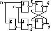 При нулевом сигнале на входе С на выходах элементов И-НЕ образуются уровни логической единицы и, следовательно, RS-триггер сохраняет прежнее состояние при любом сигнале на входе D. При С = 1 и D = 1 уровень 0 будет на входе S RS-триггера, а при D=0 уровень 0 окажется на входе R RS-триггера. Последний перейдет в единичное и нулевое состояние, соответственно. Следовательно, D-триггер принимает информацию с входа D когда С = 1, и может ее хранить до тех пор, пока С = 0. При этом на прямом выходе триггера устанавливается то же состояние, которое было на D- входе.