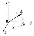 Положение точки в пространстве характеризуется тремя координатами x, y и z или радиусом – вектором r,проведенным из начала системы отсчета координат в данную точку.