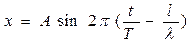 Тогда х = А sin2pn (t - l/u) или учитывая, что