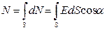 Поток вектора напряженности электрического поля – количество силовых линий, пронизывающих некоторую поверхность, расположенную перпендикулярно силовым линиям.