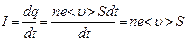 Выразим ток I и плотность тока j через скорость упорядоченного движения зарядов в проводнике. Пусть концентрация носителей тока равна n и каждый носитель имеет элементарный заряд е. Тогда за время dt через поперечное сечение проводника S переносится заряд dq = ne<u>Sdt.
