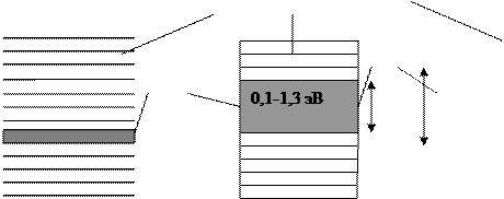 Последняя заполненная зона – зона валентности. Выше валентной зоны – запрещенная зона, а выше, где имеются свободные уровни – зона проводимости.