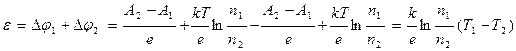 Тогда e = С (Т1 – Т2) – термоЭДС прямо пропорциональна разности температур.