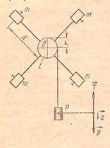 | Крестообразный маятник состоит из шкива ра-диуса r, закрепленного на оси О, четырех стерж-ней, расположенных под углом 900 друг к другу и 4-х муфт, которые могут перемещаться и зак-репляться на стержень в нужном положении. Момент инерции системы можно менять, пере-мещая муфты (грузы) вдоль стержня. На шкив наматывается нить, к свободному концу которой крепится груз рис.1 массой m. Под действием груза нить разматывается и приводит маятник в равноускоренное вращательное движение. |