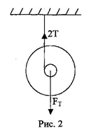 На маятник действуют две силы: сила тяжести FT, направленная вертикально вниз и сила упругости двух нитей 2Т (рис.2).