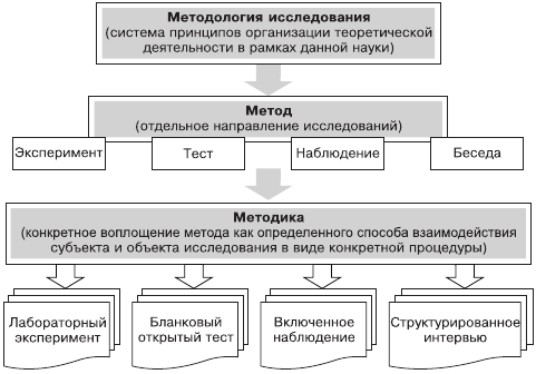 Рис. 4.1. Взаимосвязь методологии, методов и методик исследования в психологии