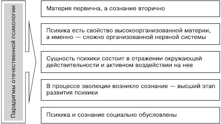 Согласно диалектико-материалистическому подходу, который является основой методологии российской психологической науки, существует ряд фундаментальных положений (парадигм), определяющих понимание окружающего мира и место психических явлений в нем (рис. 4.2).