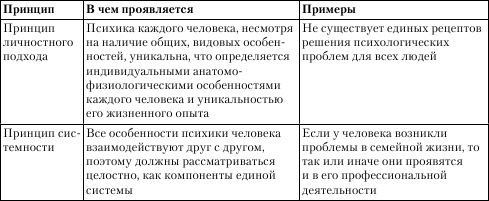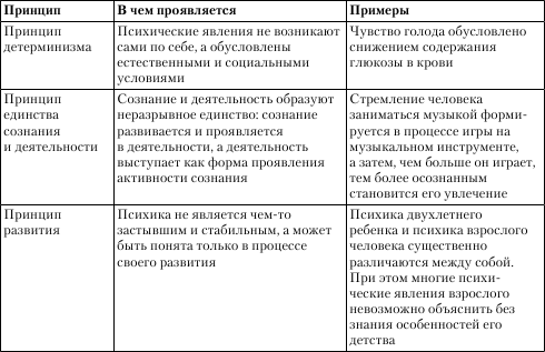 В основе трактовки тех или иных психических явлений лежат методологические принципы отечественной психологической науки. Они основаны на материалистической философии и постоянно сверяются с реальностью психологической практики (табл. 4.1).