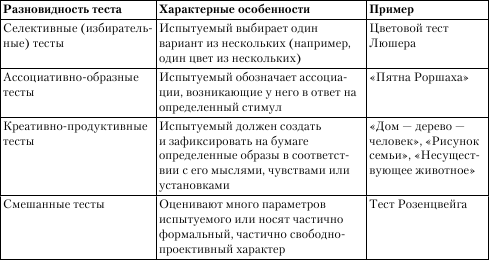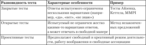 Особенности этих разновидностей тестов отражены в табл. 4.5.