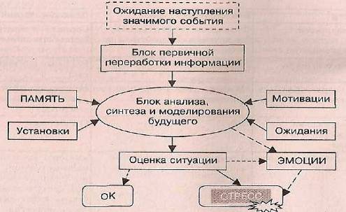 Основные отличия между биологическим и психологическим стрессом могут быть выявлены с помощью контрольного вопроса: «Наносит ли стрессор явное повреждение организму?». Если ответ «да» — это биологический стресс, если «нет» — психологический. Механизм раз вития психологического стресса, вызванного беспокойством за будущее (с учетом особенностей личности человека), показан на рис. 15.4.