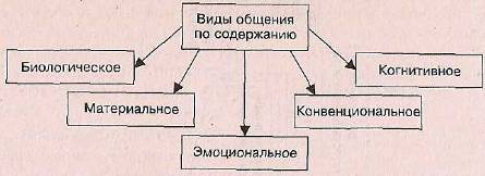 По своему основному содержанию общение может носить биологический характер, иметь когнитивный, эмоциональный или материальный характер или же относиться к конвенциональному типу (рис. 24.3).
