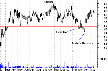 Обычно после прорыва уровня поддержки/сопротивления трейдеры начинают задаваться вопросом о том, насколько новые цены соответствуют реальности. Так, если после прорыва уровня сопротивления продавцы и покупатели усомнятся в обоснованности новой цены, то они начнут продавать. В результате, произойдет то, что я называю «раскаянием трейдеров»: после прорыва цены возвратятся к уровню поддержки / сопротивления.