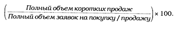 Коэффициент коротких продаж определяется как отношение объема коротких продаж к объему всех заявок на покупку и продажу. Данные по обоим показателям Ньюйоркская фондовая биржа сообщает еженедельно (по пятницам).