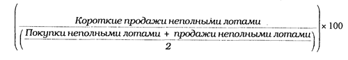Коэффициент коротких продаж неполными лотами рассчитывается путем деления объема коротких продаж неполными лотами на средний объем операций с неполными лотами за день. (Поскольку не в каждой операции с неполным лотом обязательно участвуют и покупатель, и продавец, средний объем операций рассчитывается путем суммирования объема заявок на покупку неполных лотов и объема заявок на продажу неполных лотов с делением результата на 2.)