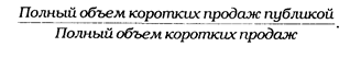 Коэффициент коротких продаж публикой определяется путем деления объема коротких продаж публикой на полный объем коротких продаж. Полученная величина показывает долю коротких продаж публикой.