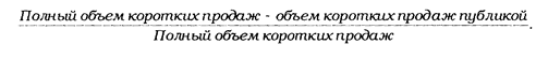 Коэффициент коротких продаж членами биржи определяется путем деления объема коротких продаж членами биржи (это разность между полным объемом коротких продаж и объемом коротких продаж публикой) на полный объем коротких продаж. Полученное значение показывает долю коротких продаж, совершенных членами Ньюйоркской фондовой биржи.