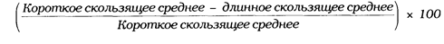 Разность между двумя скользящими средними будет выражена в про центах, если ценовой осциллятор определять путем деления разности между скользящими средними на короткое скользящее среднее: