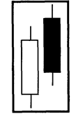 Завеса из темных облаков (Dark cloud cover). Эта медвежья модель более значима, если тело второй свечи опускается ниже середины тела первой свечи (как показано на рисунке).