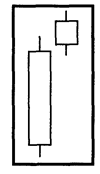 Звезда (Star). Звезда предупреждает о развороте рынка. О представляет собой свечу с маленьким телом, которая г является после свечи с телом значительно большего размера, причем тела не перекрывают друг друга. Тени свеч могут перекрываться.