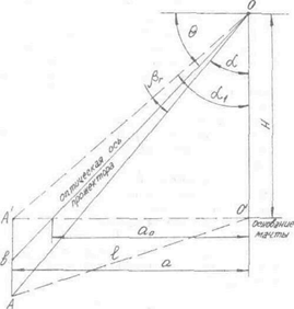 8. Принимая за расчетную åe точки А, определить угол, град, между проекциями оптических осей t для всех трех мачт по формуле