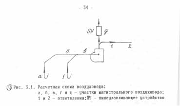 Затем ведут конкретный аэродинамический расчет воздуховодов в направлении определения суммарных потерь давления в наиболее длинной вентиляционной ветви расчетной (принятой) схемы воздуховодов. При компоновке расчетной схемы воздуховодов еще раз надо убедиться, что свежий приточный воздух подается в рабочую зону (а не в места наибольшего выделения вредностей) через распределительные насадки, находящиеся на высоте 1...3 м от пола; приемные устройства вытяжных систем должны располагаться только со стороны, противоположной фронту обслуживания, чтобы удаляемый (загрязненный) воздух не проходил через зоны дыхания работающих.
