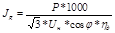 где Uн - номинальное линейное напряжение, В; cosj-коэффициент мощности электродвигателя (берут номинальный cosj=О,91...0.93); hд- кпд электродвигателя (берут 0.91,..0.92).
