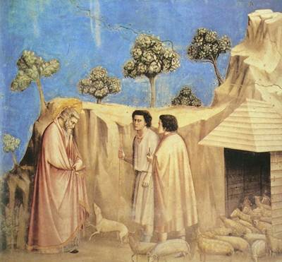 Используя схему членения стены, Джотто превращает каждый эпизод в самостоятельную картину, словно рамой, окаймлённую орнаментальной лентой. В каждой из них он изображает один законченный сюжетный момент.