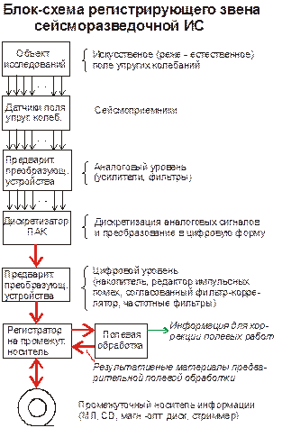 Блок-схема регистрирующего звена ИС приведена на рис. 1.1. Оно подробно рассмотрено в курсе «Сейсморазведка» и останавливаться на ней не будем. При ответе на экзамене необходимо выделить следующие вопросы: