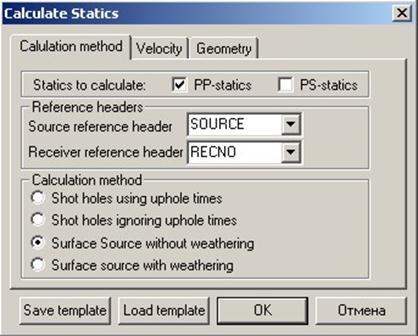 Вкладка Calculation method (рис. 4.18плакат 17а) – определяет способ расчета статических поправок: