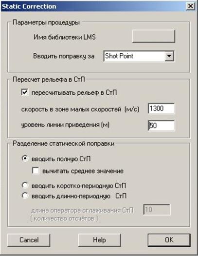 - ввод статических поправок, заданных пользователем в библиотеке LMS (порядок создания библиотеки не отличается от описанного ранее),