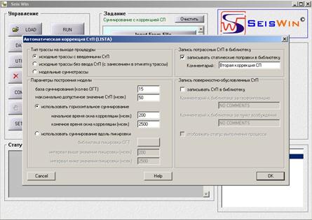 Автоматическая коррекция статических поправок в комплексе SeisWin реализована в модуле New Lista Static Correction, котором осуществляется определение статических сдвигов сигналов на трассах сейсмограмм с введенными кинематическими поправками.