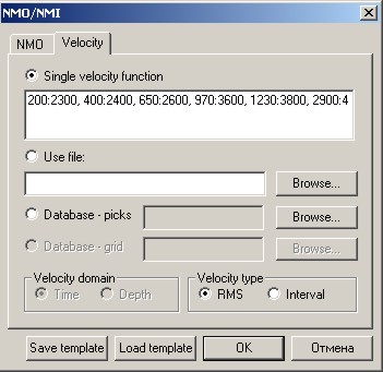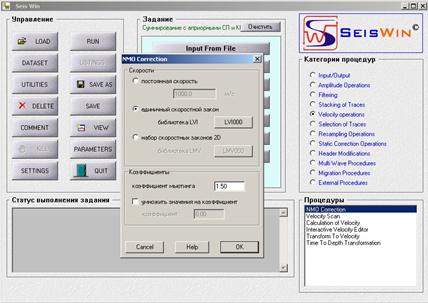 Рис. 4.34. Диалоговое окно модуля NMO Correction.