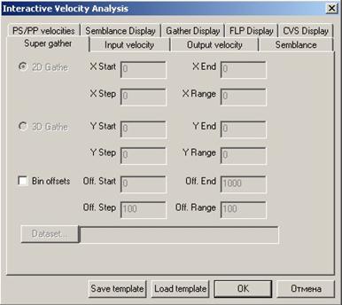 - Offset - окно просмотра обрабатываемой суперсейсмограммы (настройка параметров окна происходит на вкладке Gather display);