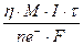 F – число Фарадея (Kл), равное произведению заряда электрона qe на число Авогадро NA, (F = qeNA = 1,6∙10-19∙6∙1023 ≈ 96500 Kл);