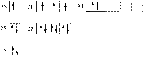 В возбужденном состоянии 1 электрон из неподелённой электронной пары переходит на пустую орбиталь более высокого подуровня. Электронно-структурная формула фосфора в возбужденном состоянии: