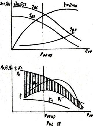 велико и большинство электронов с катода, минуя сетку, попадают на анод. В перенапряженном режиме остаточное напряжение уменьшается, происходит перераспределение тока, и в результате сеточный ток возрастает. Нагрузочные характеристики изображены на рис. 12.