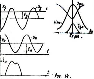 почти не меняется. В перенапряженном режиме в импульсе анодного тока появляется провал, и коэффициент формы уменьшается. Объяснение характера графика для к.п.д. вытекает из формулы.