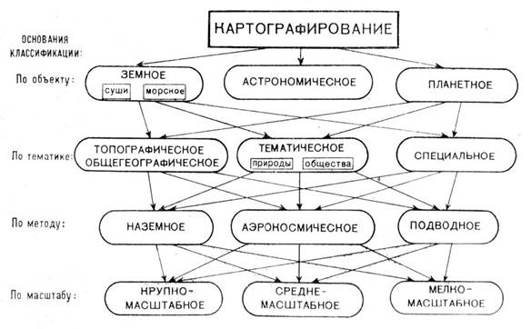 3. По методу – наземное, аэрокосмическое и подводное картографирование;