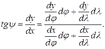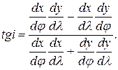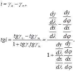 который показывает уклонение угла между меридианами и параллелями от 90°, эта величина характеризует неортогональность картографической сетки