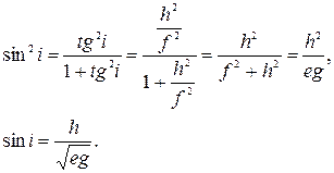 : если f>0, то это первая четверть; если f<0, то – вторая; при f=0 угол i=90° и сетка становится ортогональной.
