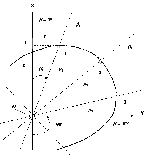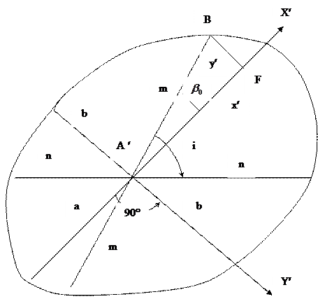 Ориентировку эллипса искажений относительно линий меридианов и параллелей определим из общего уравнения эллипса. Для этого примем, что меридианы и параллели проходят через оси
