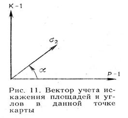 учитывает как искажения площадей, так и искажения форм (углов). Если его рассматривать как вектор в системе координат (рисунок 11), то угол